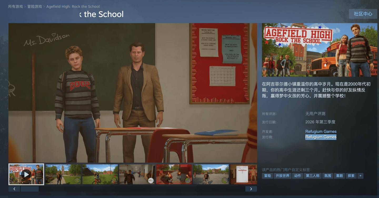 据介绍,本作主要讲述青少年故事,游玩时间 8-10 小时。其中会有 32 项主要任务,带来 2 种不同结局,另外还有 15 项支线任务,包括英文、数学、地理、德语、音乐共五项课程。有商店可供购买自行车、衣服、发型、纹身、配饰、,以及其他更多内容。